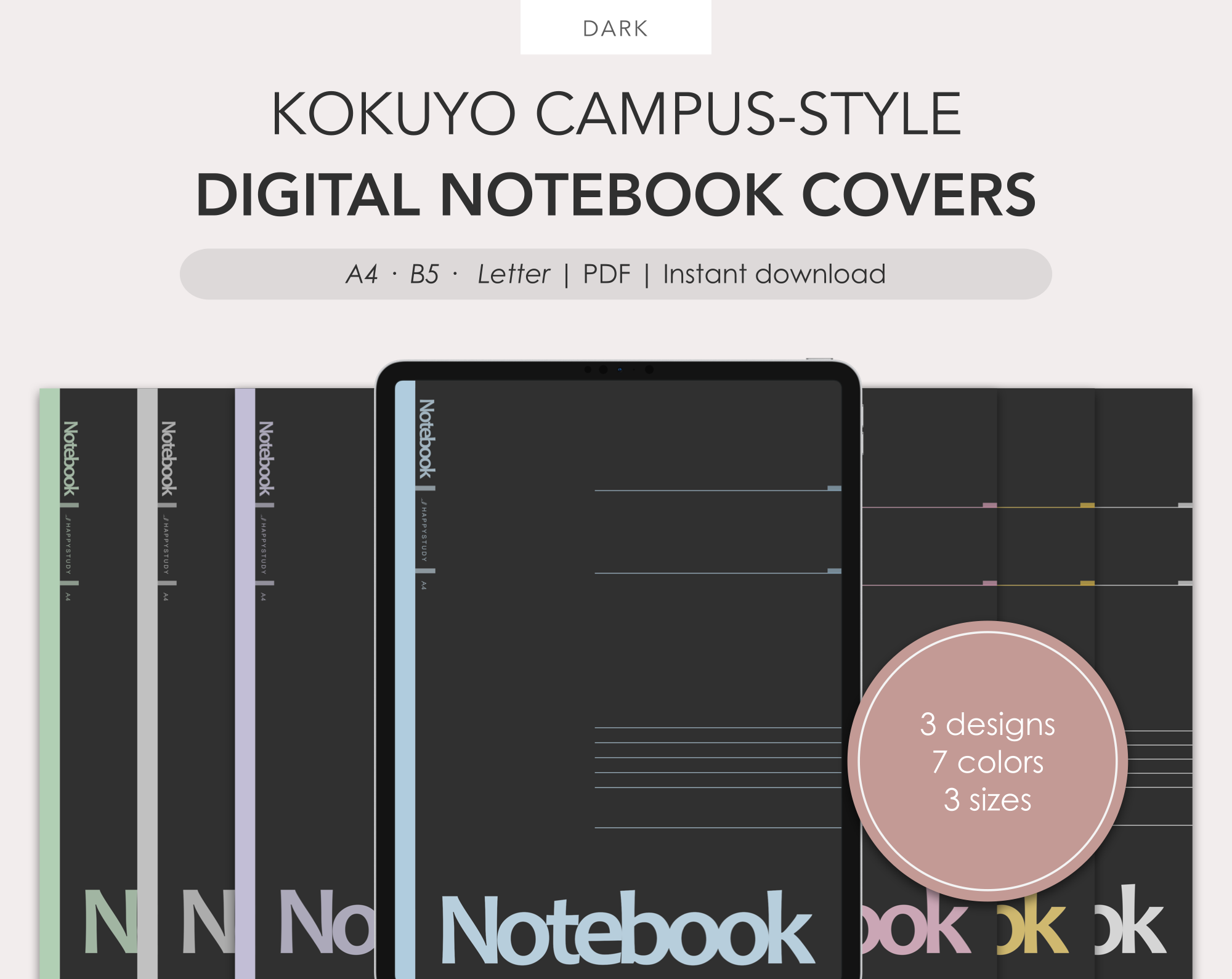 Kokuyo Campus-style digital notebook covers in A4, B5 and Letter sizes.